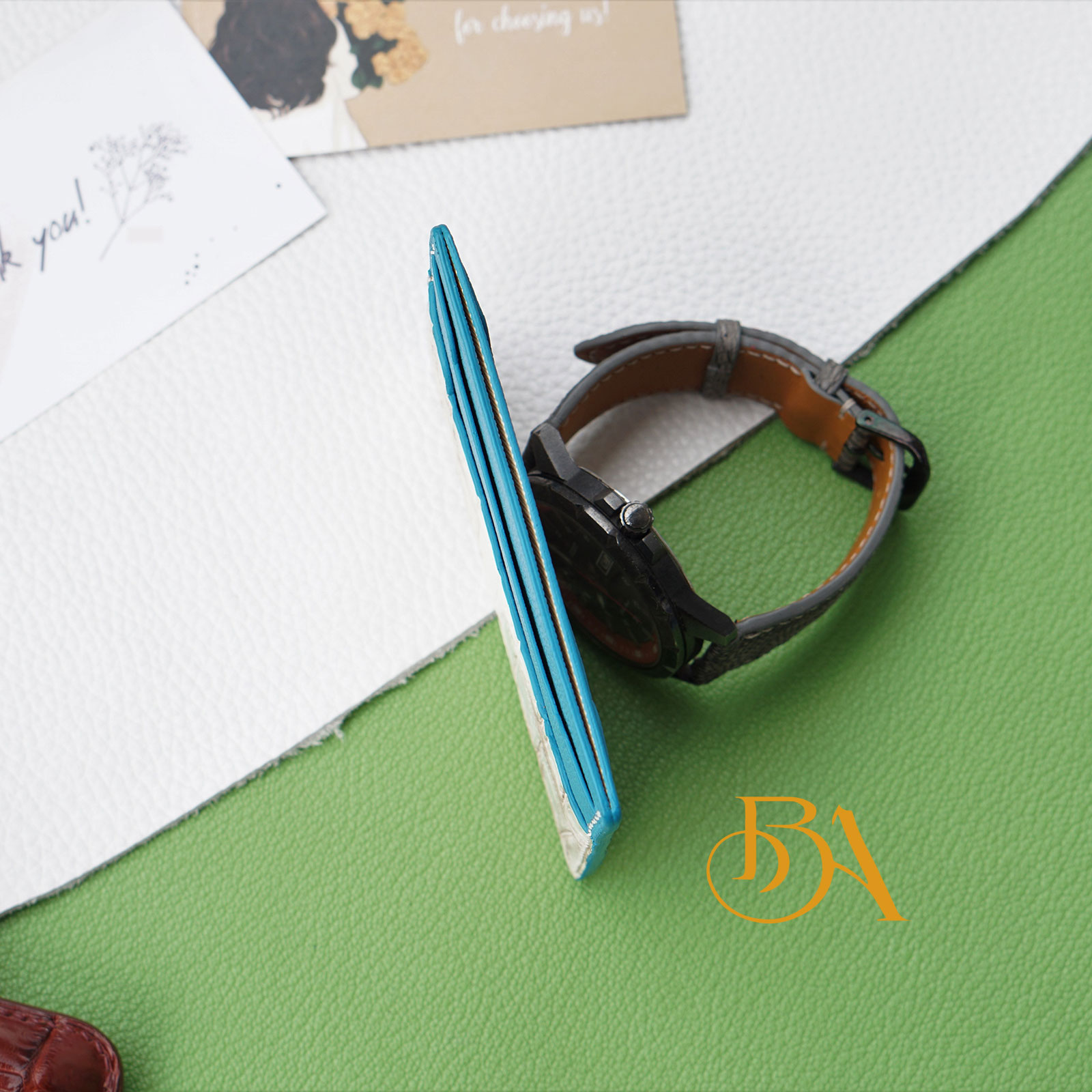 * PREMIUM QUALITY LEATHER: Our card wallet is made from Himalayan Alligator leather and Alran Chevre Sully Goat leather, which is equally luxurious as it is long-lasting.